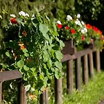 Některé pokoje mají výhled přes zahradu.